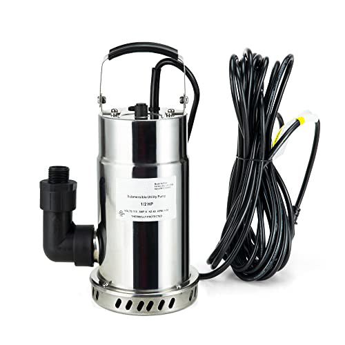 TDRFORCE Oil Free Stainless Steel Submersible Utility Pump, Water Pump, 1/2 HP, 30ft. Power Cord, Model# SUP050 : Patio, Lawn & Garden